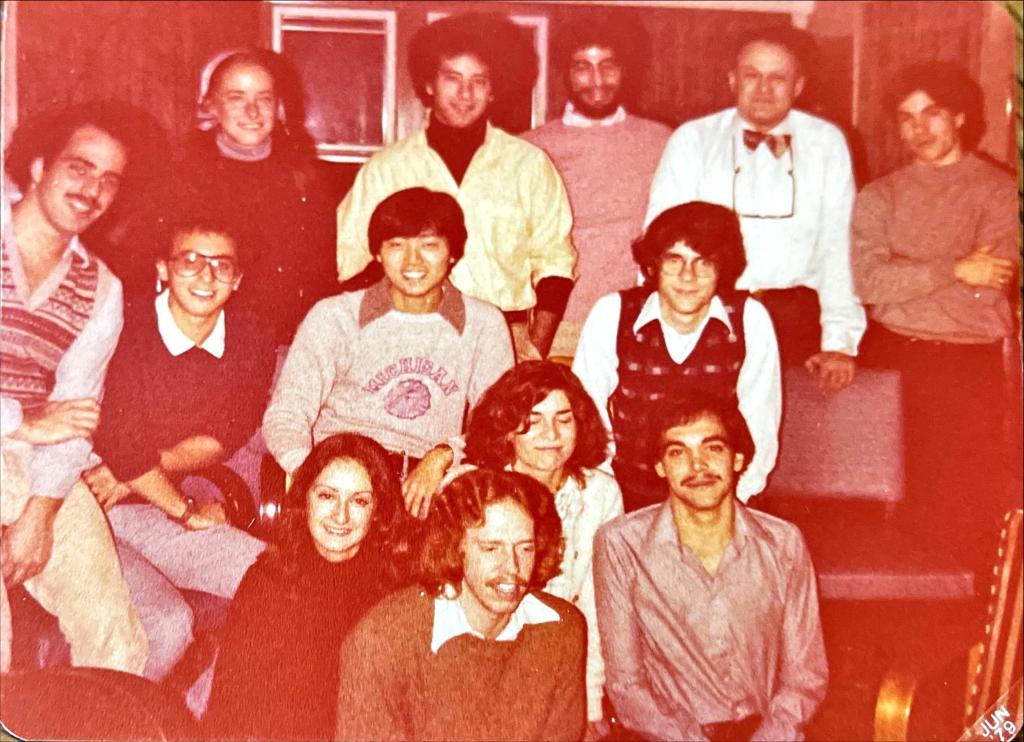 Standing next to Wolfgang Stolper of the Stolper-Samuelson Theory of International Trade, University of Michigan Economics Honors Group photo. US Senator Chuck Schumer’s brother Bob standing on the other side of me. Susan Block, eyes closed; Marc Aron: mustache, disco shirt.